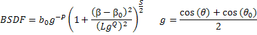 In the equation above, q = scatter angle with respect to the surface normal coordinate system q0 = specular angle with respect to the surface normal coordinate system b = sin(q) b0 = sin(q0)