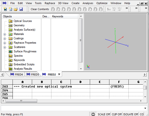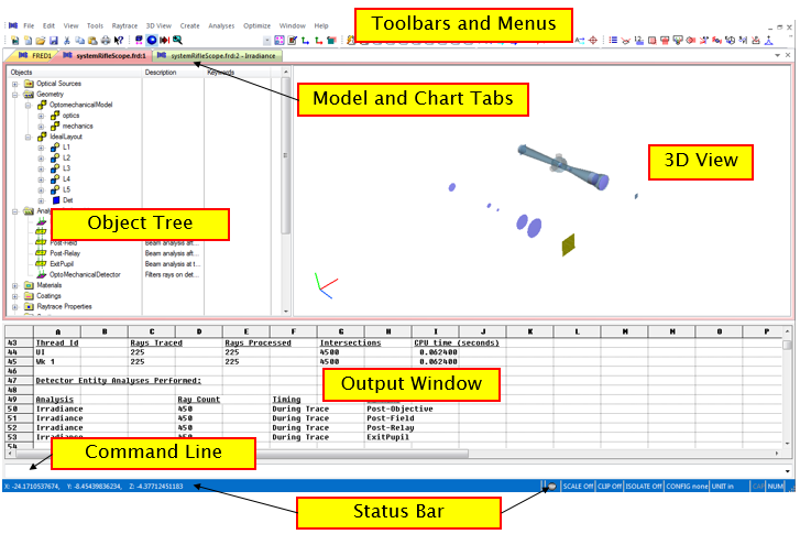 FRED's Output Window is where the program relays essential information regarding raytraces, analyses, and document modifications. There are several customizations to the Output Window that the user should consider:
