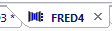 We want to move FRED4 and its associated script tab to a new tab group (i.e. a new row of tabs). A new tab group is created by dragging tab FRED4 into the main window. A rectangular region of the window will become outlined in grey, indicating the region that the new tab group will occupy when FRED4 is released.