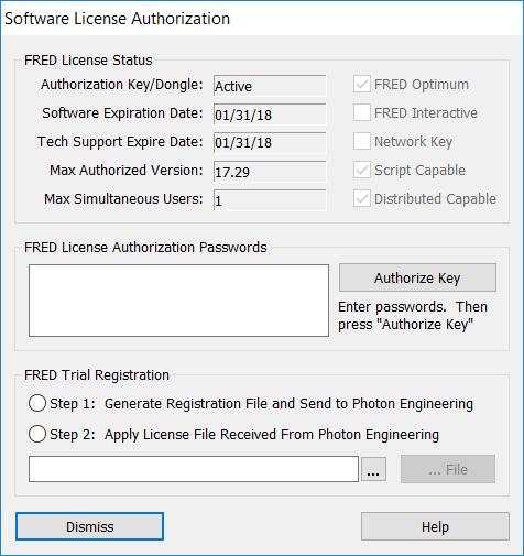 You can click on the License Info button to open the Software License Authorization dialog box.