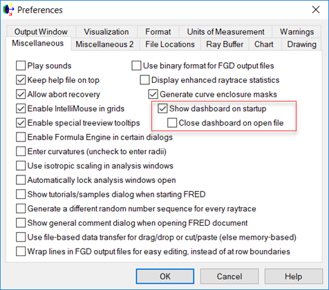 If Close whenever a FRED file is open is checked, the Dashboard automatically closes when you open a file. Uncheck if you want to keep the Dashboard open along with your open FRED files.