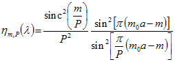 Diffraction efficiency and phase for a Binary Optic In a binary optic, the linear ramp phase function is approximately by P equally incremented constant phase steps. The diffraction efficiency at a specific order m and wavelength l is given by: