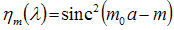where m0 is the reference diffractive order, and a is given by (l0/l)*(d/dmax) where l0 is the reference wavelength, d is the blaze depth, and dmax is the optimum blaze depth.
