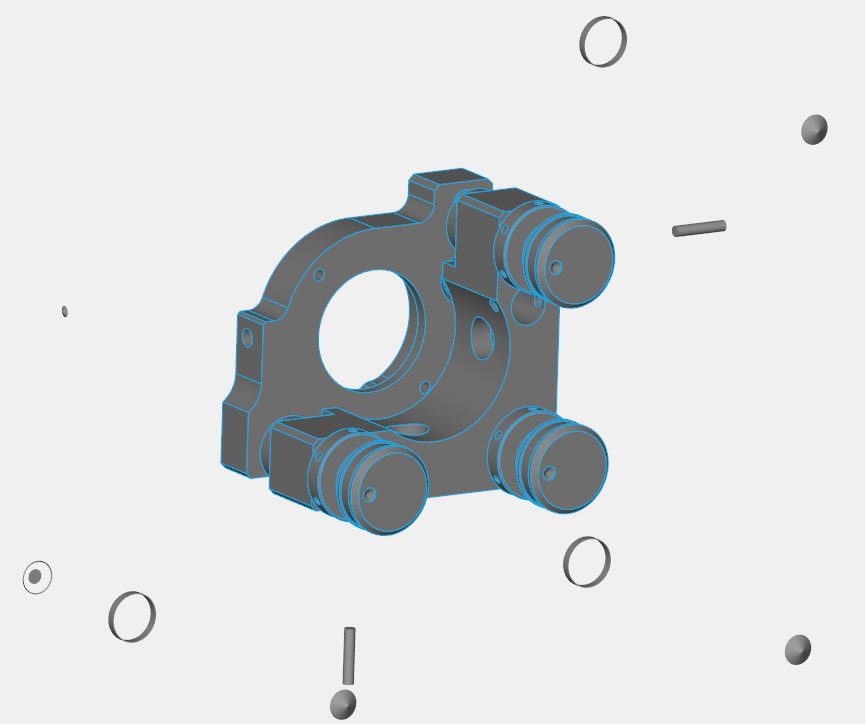 Figure 3 - An "Exploded" view of an Optical Mount in CAD (created in 3DConnexion Viewer) showing several internal surfaces.