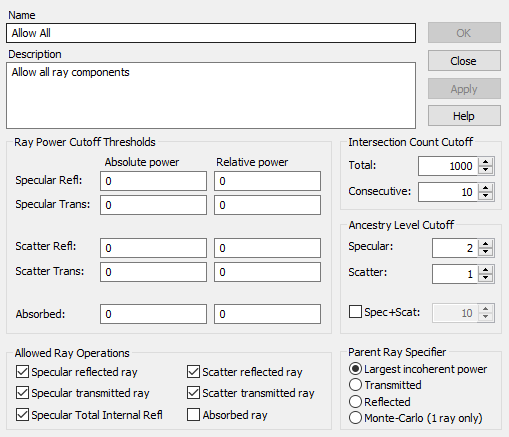 Figure 1-11. Allow All Raytrace Properties dialog (default).