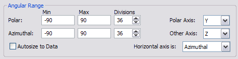 Next, we calculate the Intensity at the exit face using the Intensity on a Polar Grid analysis feature. Since rays can only leave the exit face in the +z direction, the Directional Analysis Entity should be edited in order to restrict the calculation to that hemisphere. For the default polar (Y) and azimuthal (Z) axes in the local coordinate system, the azimuthal angle should range from -90 to +90 deg as shown in Figure 1-23.