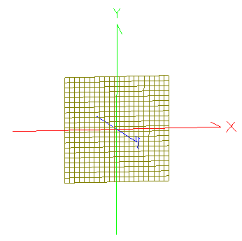 The Analysis Surface is a planar area used to make an Irradiance calculation. Its representation in the 3D View is shown in Figure 1-14 and dialog box in Figure 1-15. The Analysis Area option sets the local X & Y extents which define a rectangular area, the number of pixels (divisions) in each direction, a scale factor applied equally to the X & Y extents, as well as autosize and 1:1 aspect ratio settings. The user can also choose whether to draw the Analysis Surface grid in FRED's 3D View and to interpret X & Y extents as being at the edge or center of the outer pixels.