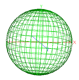 A Directional Analysis Entity measures Intensity over the full 4π steradians in equal angle increments. Its graphic representation in the 3D View is shown in Figure 1-16 and its dialog box in Figure 1-17. The Directional Analysis Entity is represented graphically in the 3D View as a sphere whose polar and azimuthal divisions are analogous to longitudinal and latitudinal lines on a world globe. The terms "polar" and "azimuthal" therefore must be distinguished from their conventional meanings in a spherical coordinate system. The Polar axis runs from the "north" to "south" poles of the globe and is chosen by the user to lie along one of the three local coordinate system axes. The "azimuthal" angle is measured from the user-selected Other Axis coordinate axis direction.