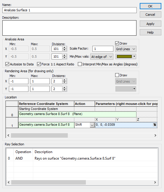 Figure 3-5. Analysis Surface with focus shift added.