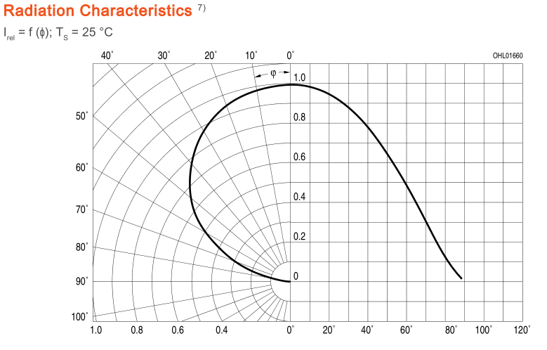 Figure 2-1. OSRAM TOPLED LS-T676 LED spectrum (Top) and relative angular power distribution (Bottom).
