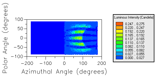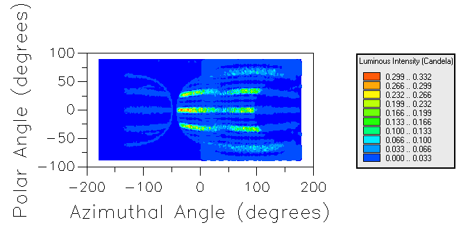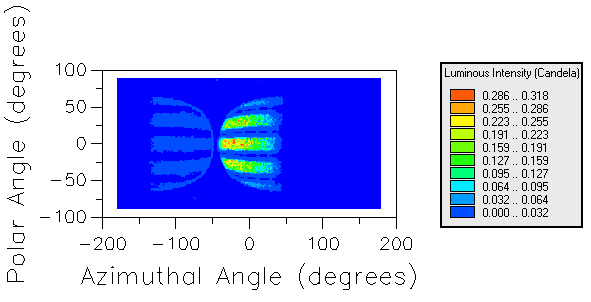Figure 2-13. Luminous Intensity for rays exiting the prism Bottom face only.