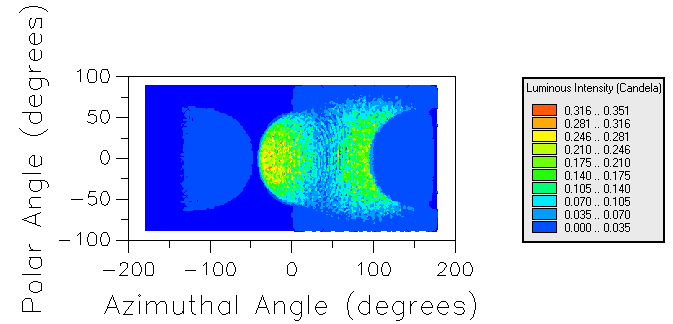 Figure 2-14. Luminous Intensity pattern for prism x-width +/-5mm (half of original width)