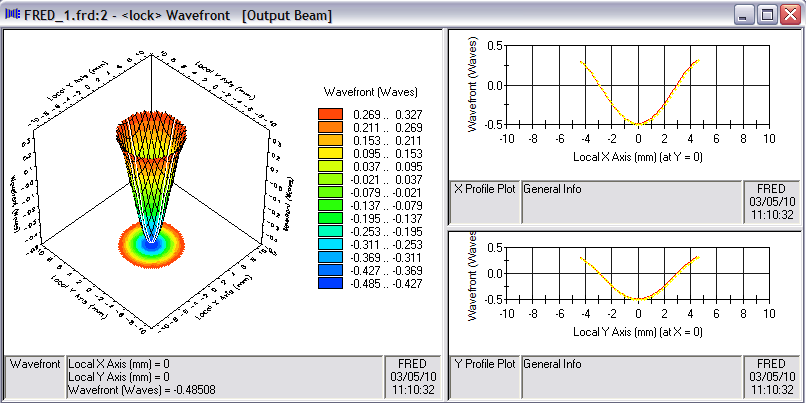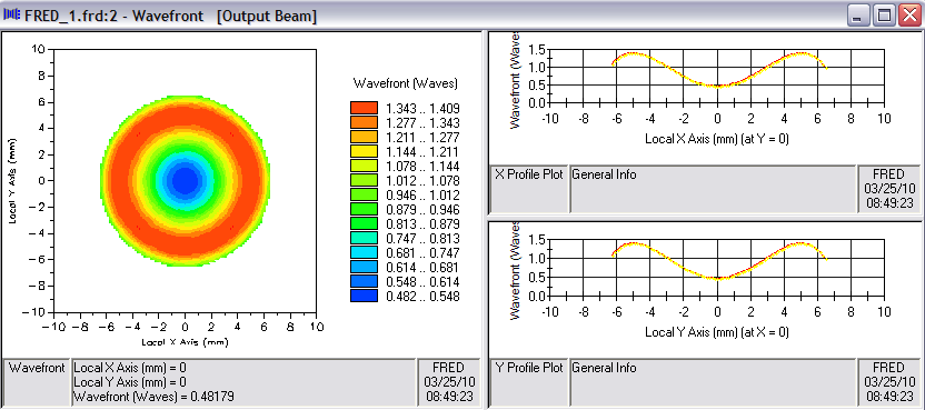 We can now view the wavefront profile of the beam shown in Figure 2-4 by right-clicking in the Chart and selecting the option Show Computed Wavefront from the popup menu. As can be seen from the chart in Figure 2-5, the beam has just more than λ/2 center-to-edge wavefront curvature.