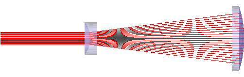 Figure 2-14. Raytrace through afocal showing ray failures.
