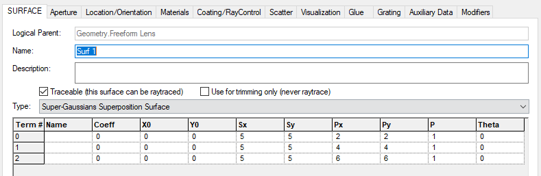 Figure 3-18. SGSS parameters for Surf 1 of the Freeform Lens.