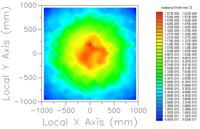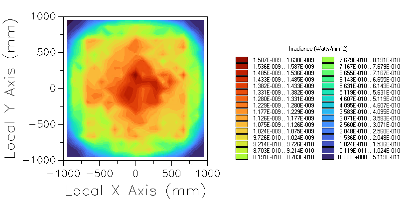 Figure 3-30. Irradiance distribution on the Illumination Analysis grid prior to optimization.