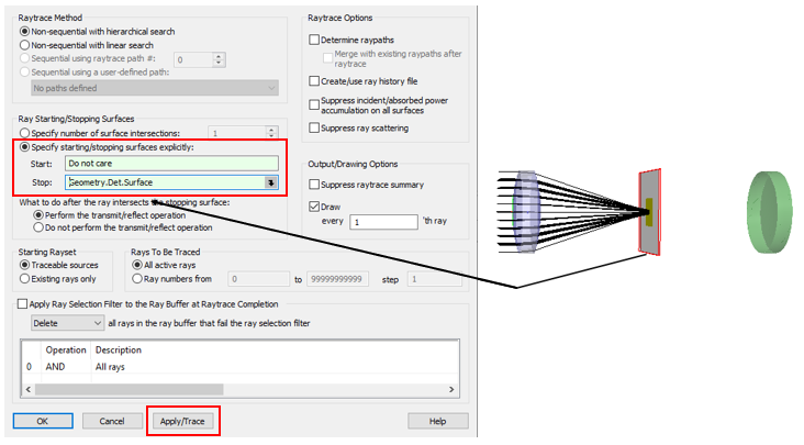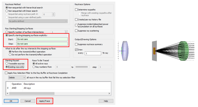Step 3: Use the advanced raytrace utility to continue tracing rays through the system.