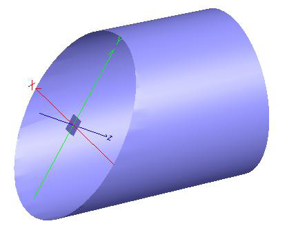 If the cylinder in the previous figure were exported from FRED into CAD the trimming specifications would not export. However, if we increase the extent of the trimming plane so that it completely cuts through the cylinder, then the exported model will include the trimming specifications (see figure below).
