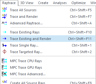 With rays now existing after the Resampling feature has executed, trace these new rays through the remainder of the system by employing Trace Existing and Render or Trace Existing Rays.
