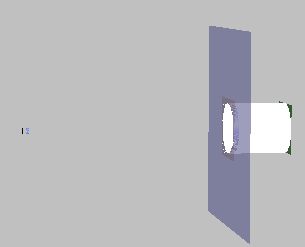 The Field Resampling feature offers a solution to this predicament by resampling the incident wavefront just before entering PCX and, in effect, resizing the beamlets such that they sample its aperture . To that end, two planes are created a small distance to the left of PCX. The first of these planes “.resample.Surf 1” is transmissive and sized such that it intercepts all the rays exiting PCV. This is of utmost importance since the field will be resampled at this plane and therefore must include the coherent contribution of each and every ray. Attached to “.resample.Surf 1” are two Analysis Surfaces, “full beam before L2” and “Resample AS”. The first of these, “full beam before L2” is used simply to examine the irradiance pattern in the resample plane. The second Analysis Surface, “Resample AS” will be used for the function of resampling the beam. Note that “Resample AS” is sized slightly larger (26mm half-height) than the 25mm clear aperture of PCX since it is only over this area resampled beamlets need be created. Also note that "Resample AS" is shifted by a small distance off of the surface “.resample.Surf 1”. The second surface “.resample.Surf 2” is an absorbing surface located between “.resample.Surf 1” and PCX with a rectangular Outer Trim Volume of half-height 30mm and a circular Inner Trim Volume equal to the clear aperture of PCX. The surface “.resample.Surf 2” acts to block resampled beamlets outside the aperture of PCX as would any opto-mechanical mount.