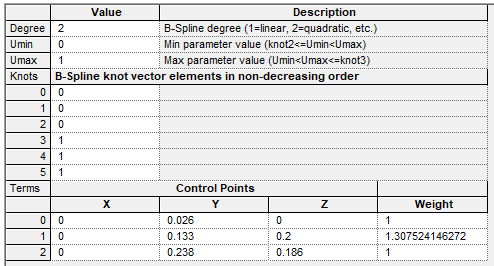 •The weight of the second control point can be accessed using the Weight of a NURB control point variable type and setting Index = 1.