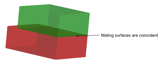 To remove the coincidence at the mating interface, the blocks must then overlap in height. This overlap eliminates the coincidence at the mating interface, but introduces three new coincident surfaces on the block walls.