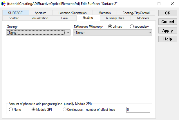 Now double click on "Surface 2" of the "DOE lens" element to open its dialog and then switch to the Grating tab.