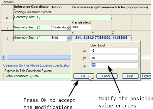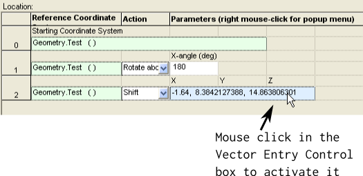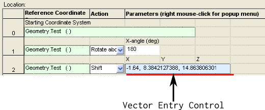 There are two ways to specify an x,y,z position triplet in the Vector Entry Control interface: