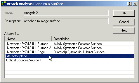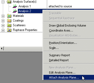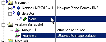 Analysis Planes can only be used in conjunction with surface or source entities, though more than one analysis plane can be attached to a surface or source.
