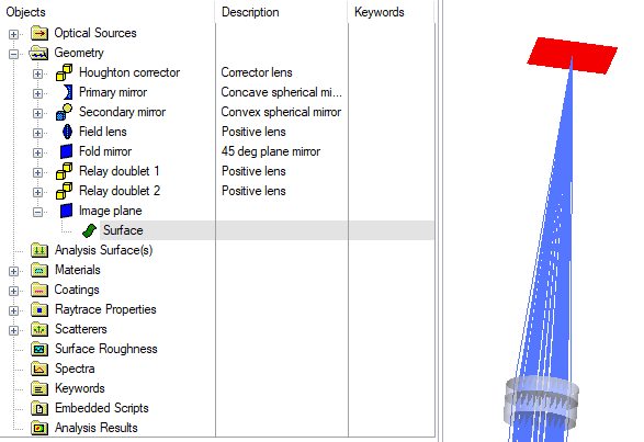 Analysis planes are used to evaluate ray distributions on surfaces or sources and are required for use of the analysis functions. Analysis planes do not interact with rays during a raytrace, rather, they contain one or more ray filters used select a subset of rays for analysis. Rays can be filtered and analyzed at any time and location after they are created in the system, before or after raytracing.