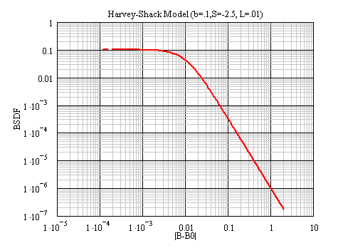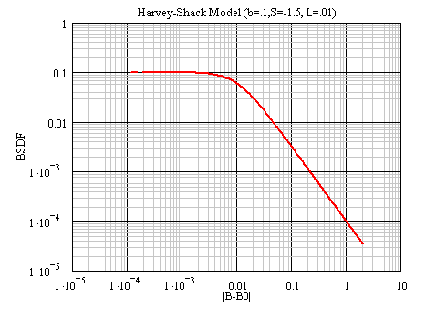 The Harvey-Shack model is linear shift-invariant with respect to incident angle and describes surface scatter from smooth optical surfaces over 2p steradians ( roughness sRMS << l). The mathematical form of the modified three term Harvey model is given by: