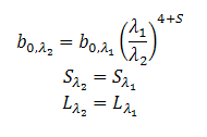 Note in the equations above that only the b0 parameter scales. As the value of S is typically on the order of -2, it is often assumed that the scaling factor is simply the ratio of the wavelengths squared.