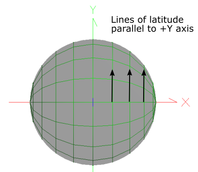 Indicated by the prefix, "tt", this convention uses a spherical coordinate system that is rotated so that the projected latitude lines of the spherical coordinate system are parallel to the +Y axis. This projected view is shown in the image below.